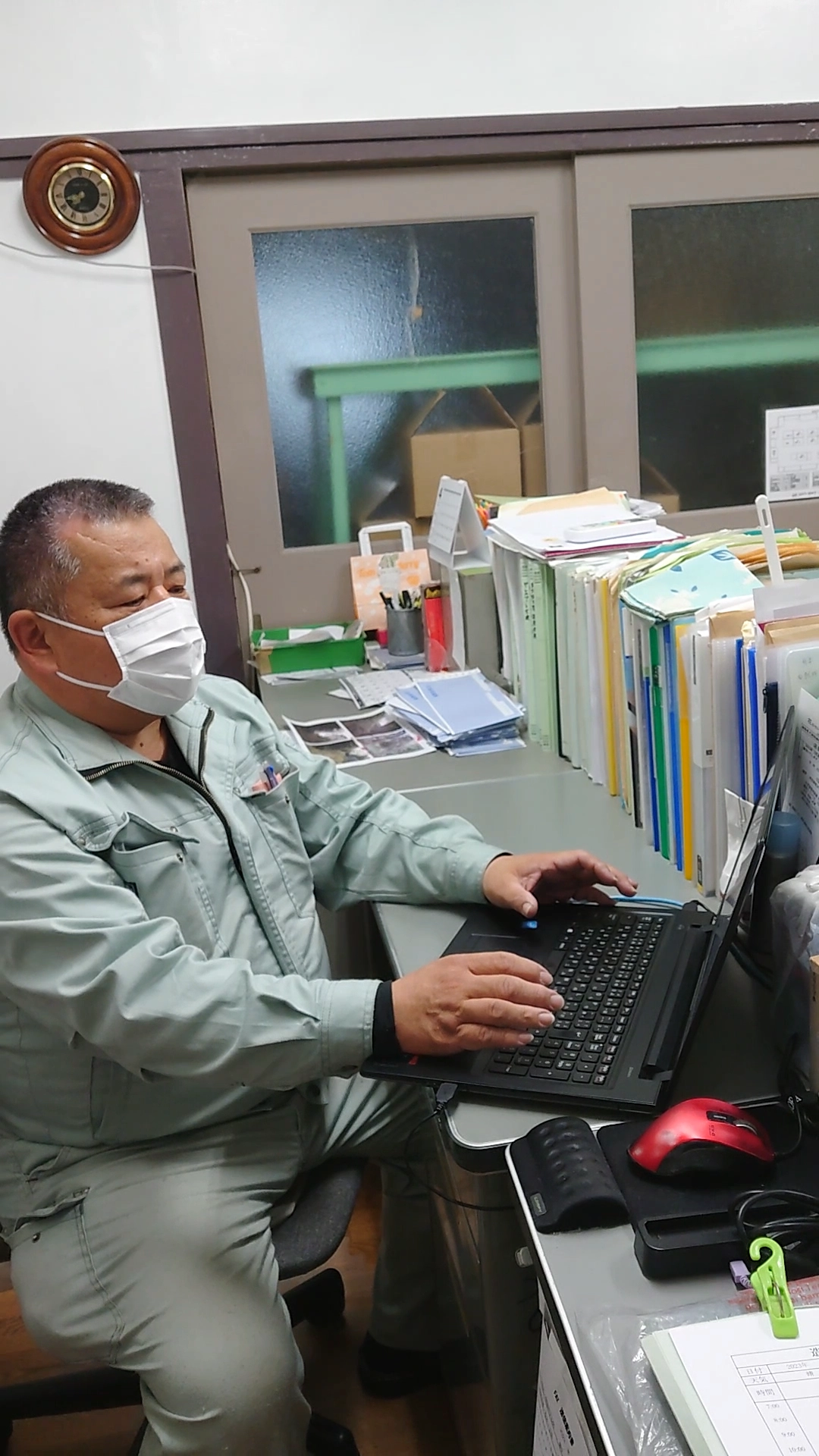 お昼休憩を挟みながら、事務所に進捗報告などを行います。